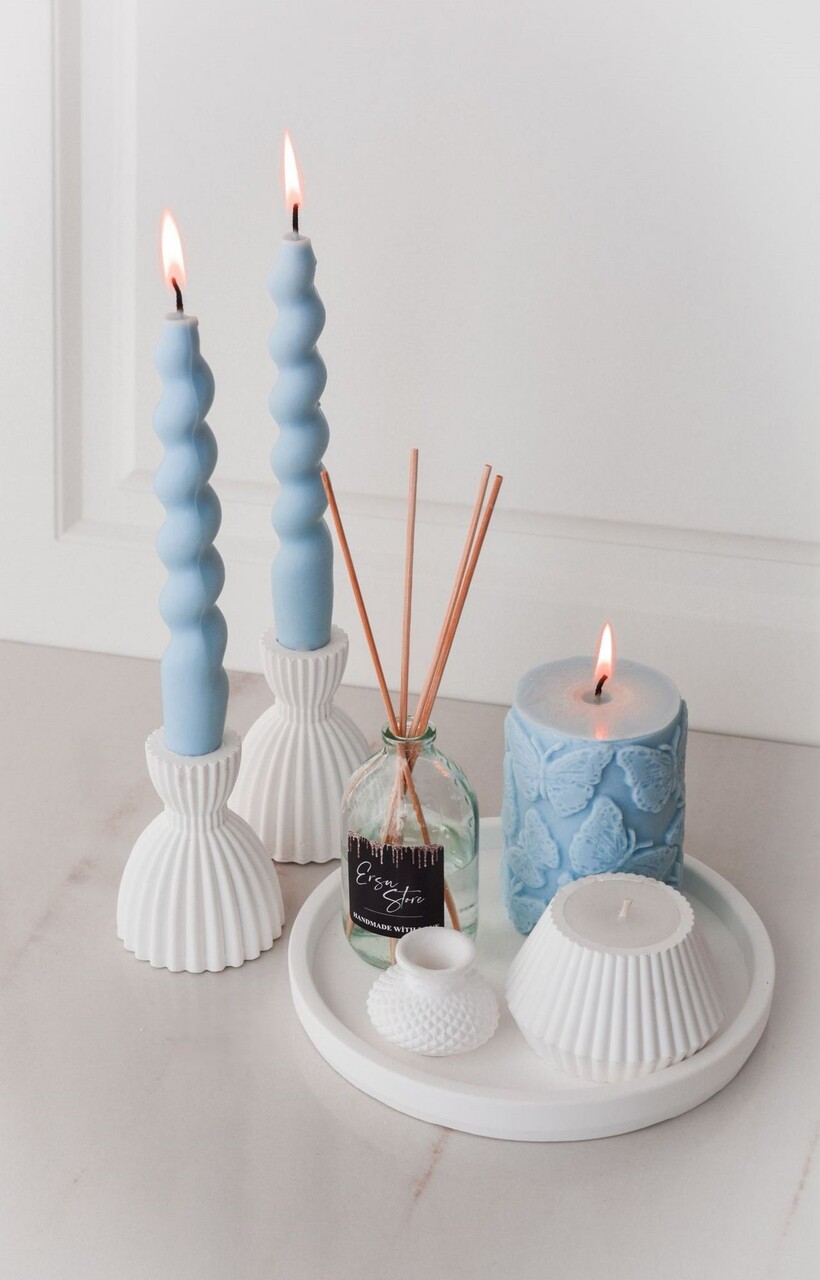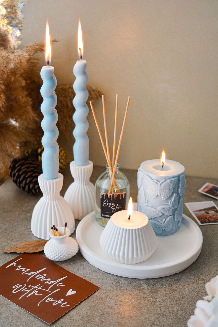 Set de lumanari, Ers1240, Albastru/Alb