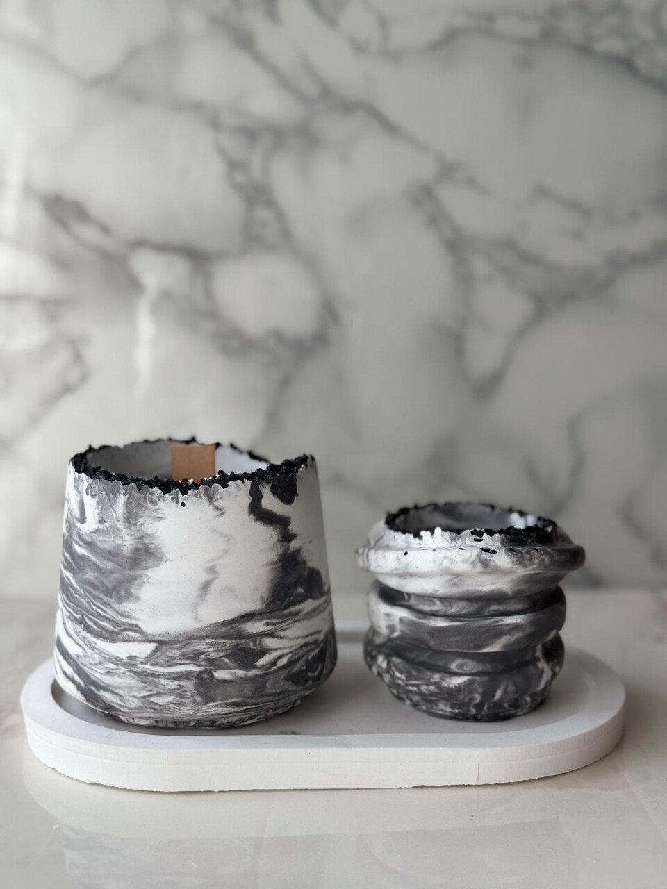 Set de lumanari, Glamour Candle 43ST, 100% SOIA, Gri/Alb