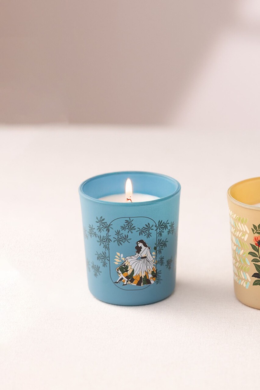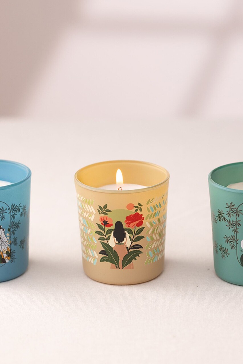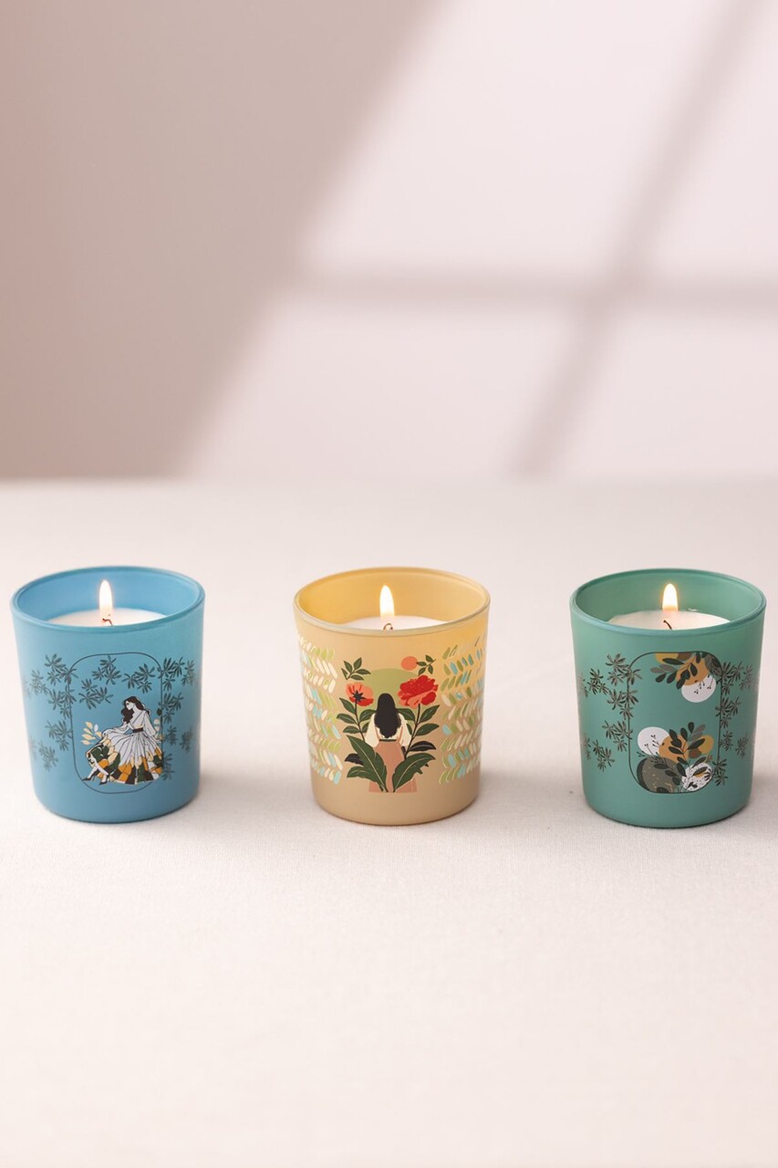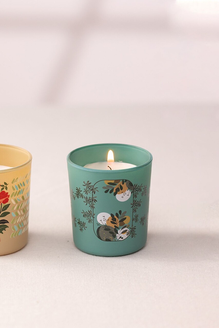 Set de lumanari, Secret Garden, Sticla, Albastru / Verde / Muștar