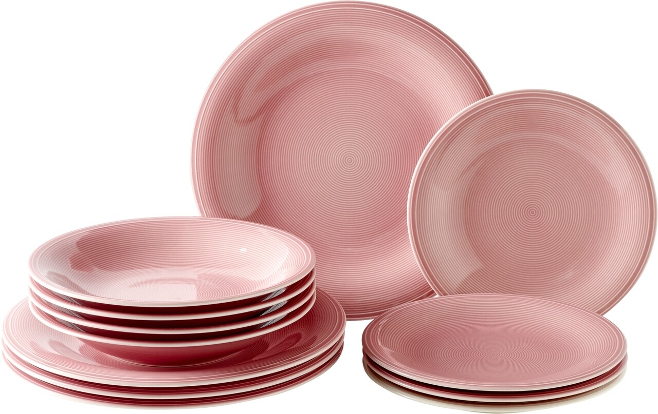 Set de masa 12 piese, Like Villeroy & Boch, Color Loop Rose, portelan premium, roz