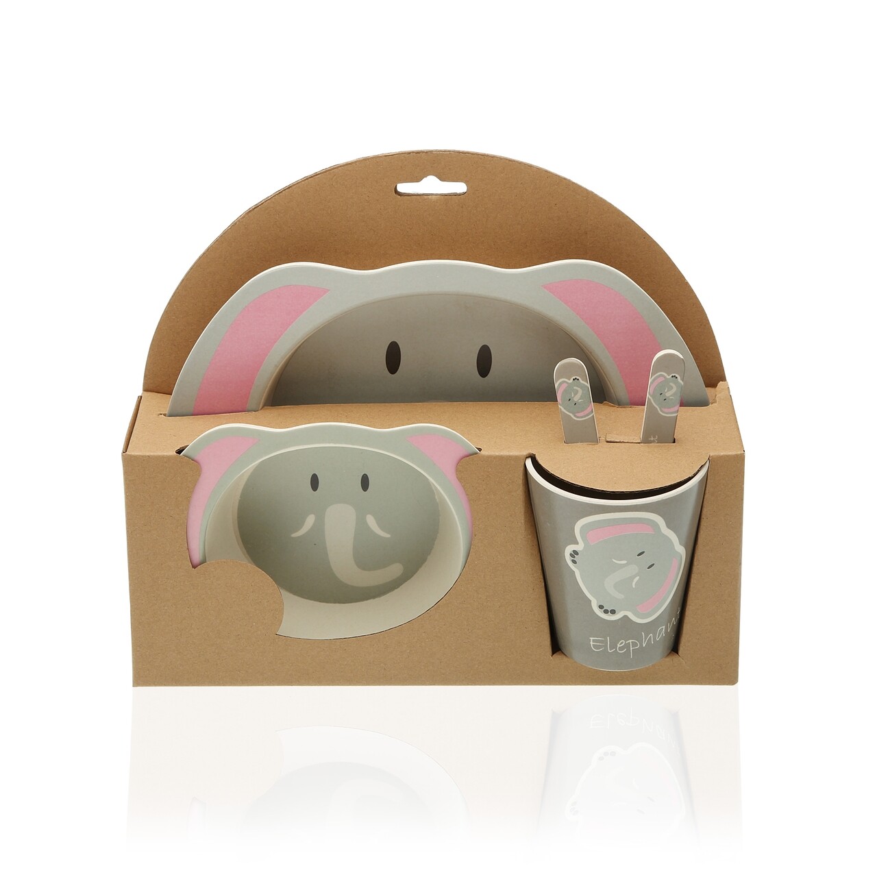 Set de masa pentru copii, 5 piese, Versa, Elephant, fibra de bambus, multicolor