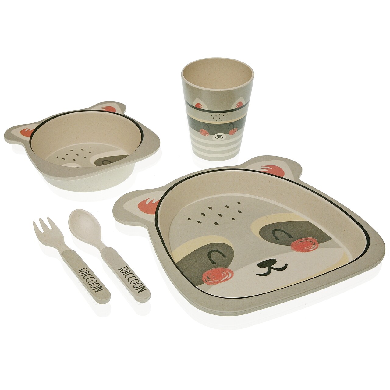 Set de masa pentru copii, 5 piese, Versa, Raccoon, fibra de bambus, multicolor