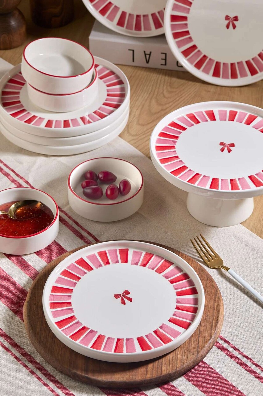 Set de mic dejun (11 piese), L'essentiel Maison, 430KSV6186, Bol: 10,5 x 10,5 x 3,5 cm - 150 ml (4 bucăți), Roz/Alb