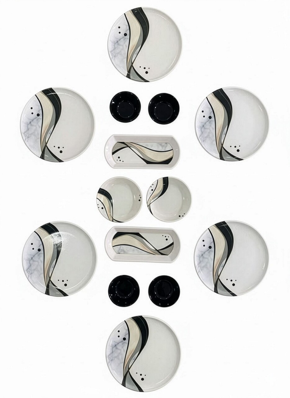 Set de mic dejun (14 piese), L'essentiel Maison, 759NRE1123, Platou: 20 x 9 x 3 cm (2 bucăți), Alb / Negru / Gri