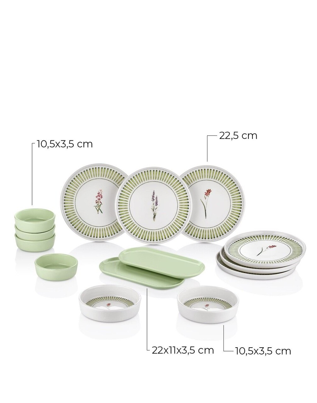 Set de mic dejun, Hermia, 430KSV4404, Platou: 22 x 11 x 3,5 cm (2 bucăți), Verde deschis