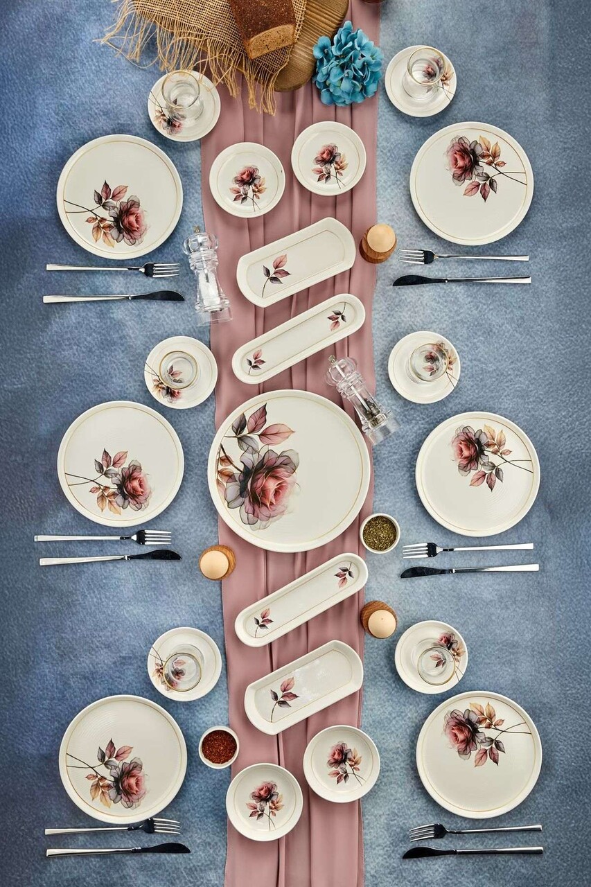 Set de mic dejun, Hermia, 759NRE1110, Farfurie de servire: 20 x 20 cm (6 bucăți), Multicolor
