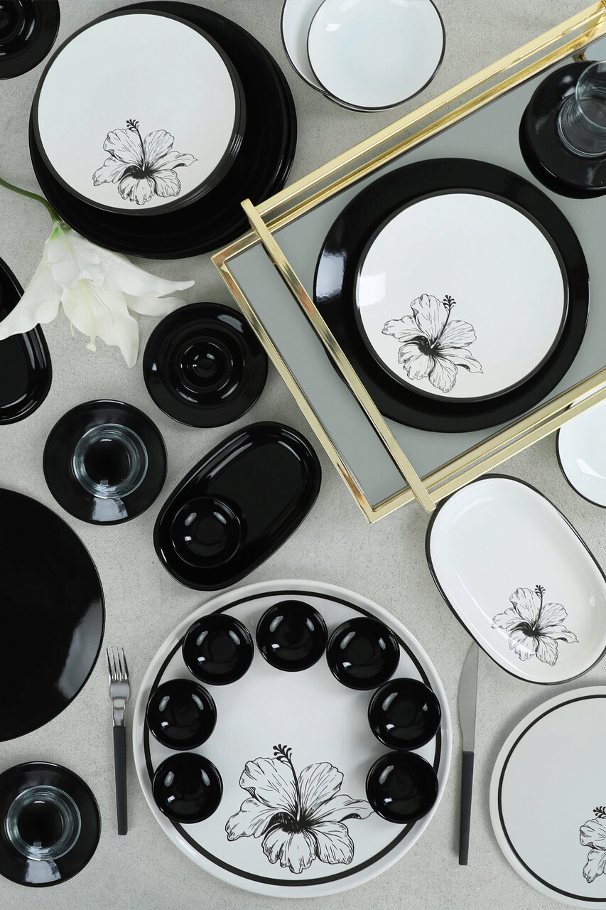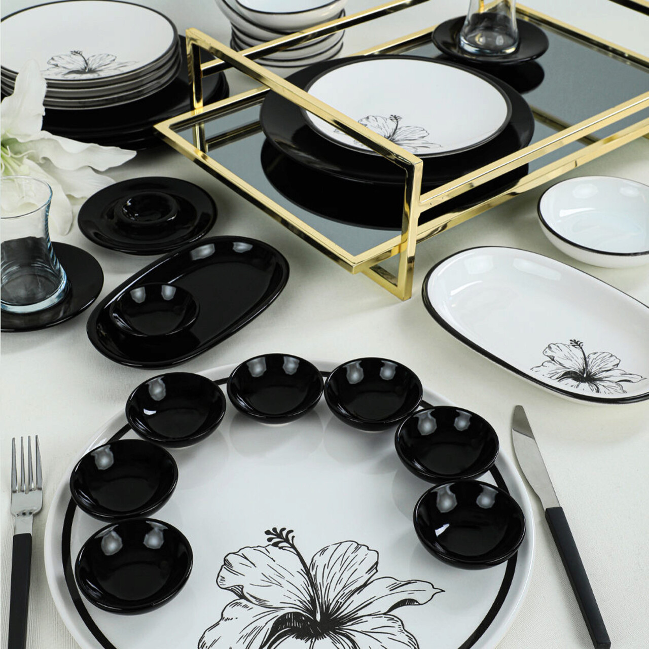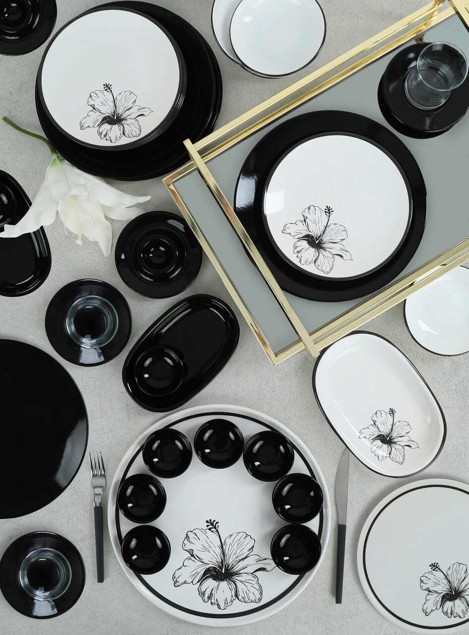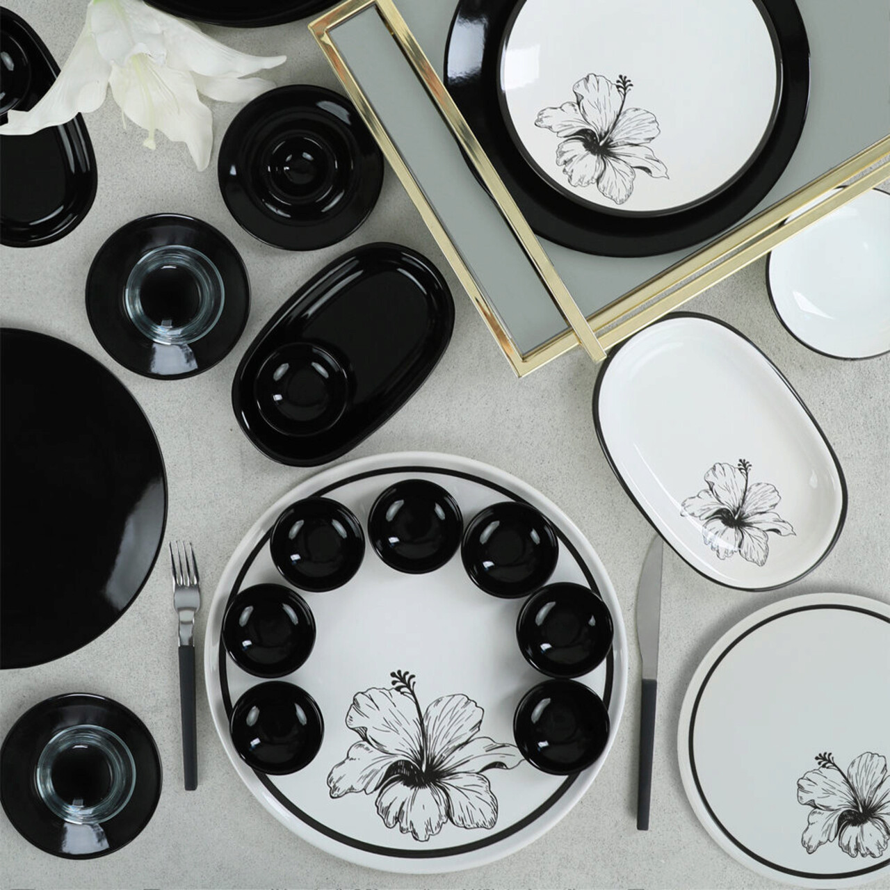 Set de mic dejun, Keramika, 275KRM1701, Ceramica , Nu absoarbe apa, Alb/Negru