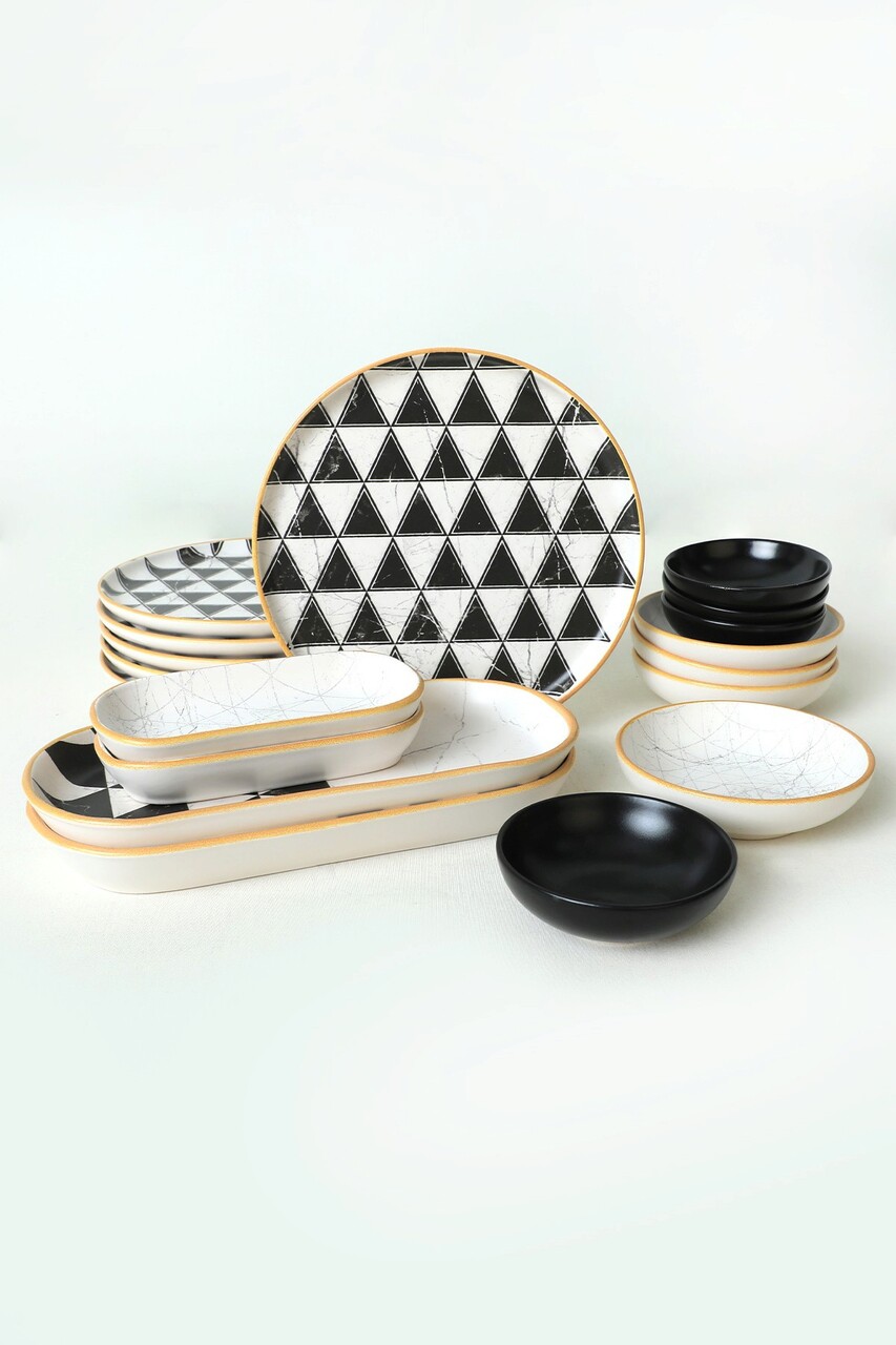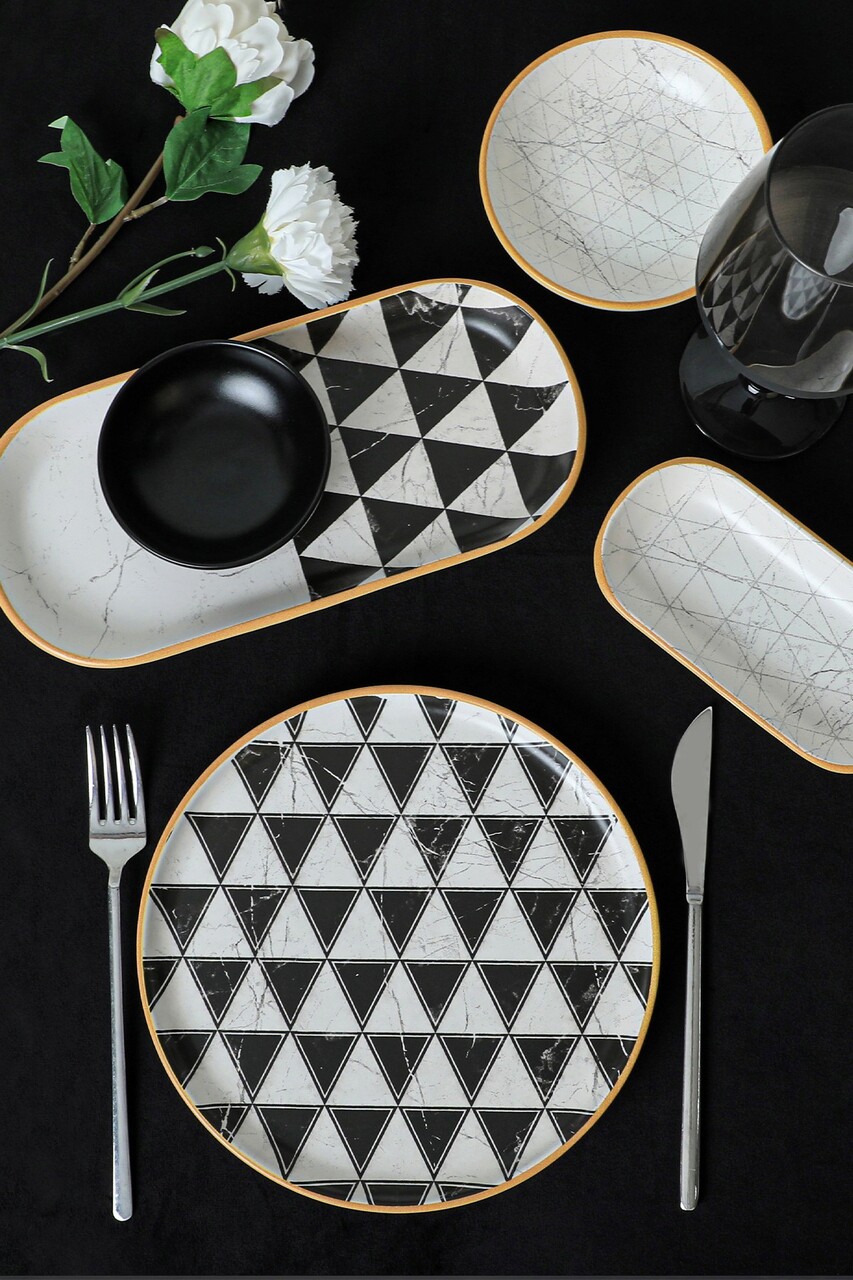 Set de mic dejun, Keramika, 275KRM1958, Ceramica , Nu absoarbe apa, Alb/Negru