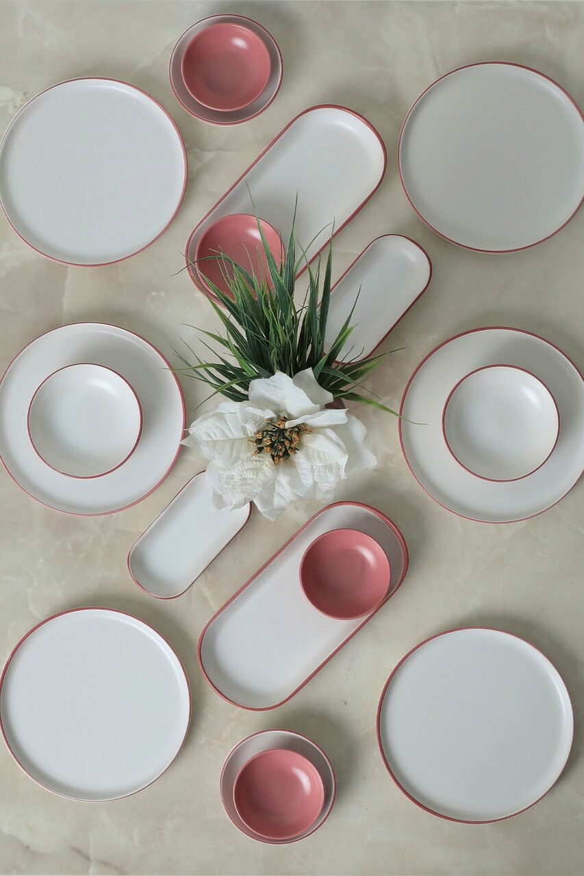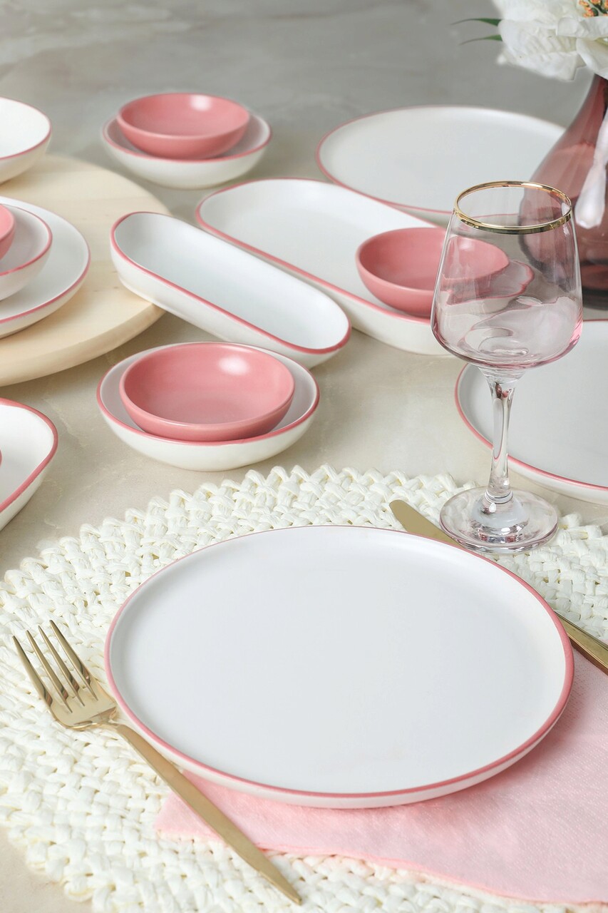 Set de mic dejun, Keramika, 275KRM1965, Ceramica , Nu absoarbe apa, Roz/Alb