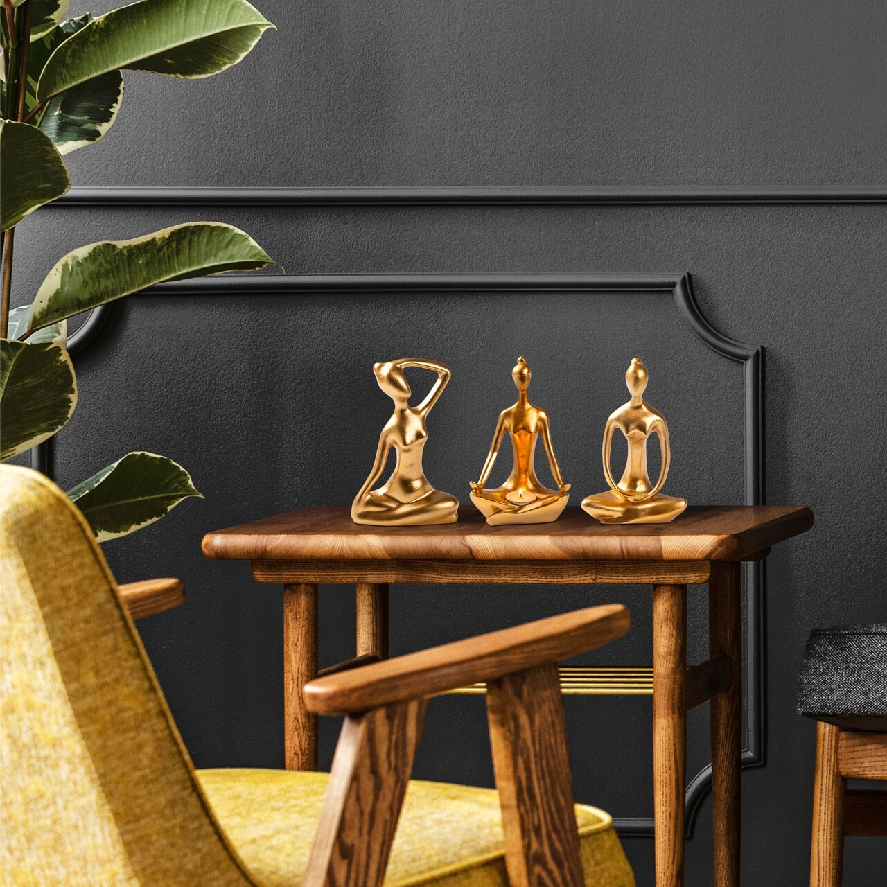 Set de obiecte decorative, Yoga, Poliester, Auriu