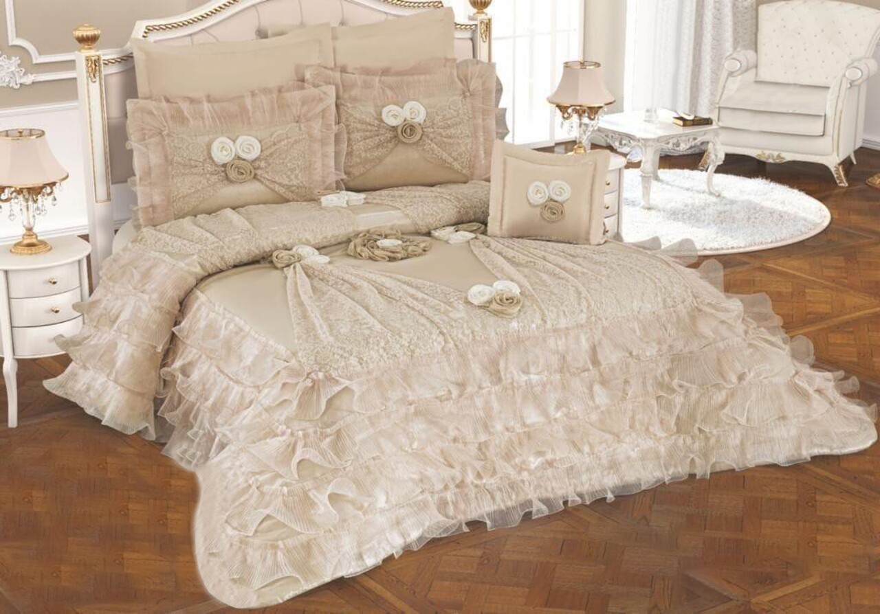 Set de pat 4 piese, Bedora, Lux Ornament, poliester, bej