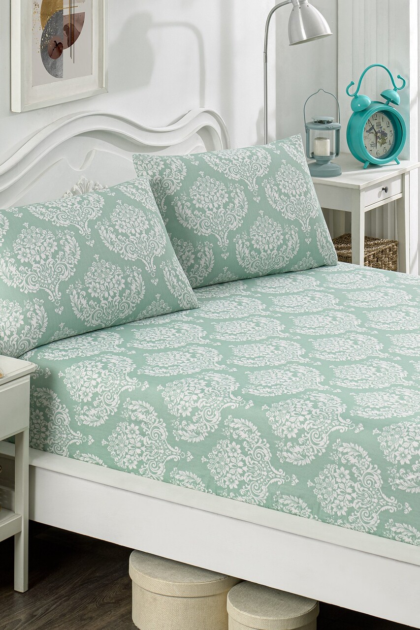 Set de pat dublu (cearceaf cu elastic si perne) 3 piese, L'essentiel Maison, Post, Apa Verde
