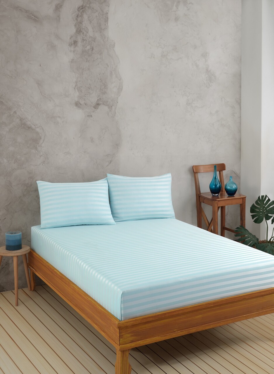 Set de pat pentru o persoana (cearceaf cu elastic si perna) 2 piese, Water Yollu Saten - Mint, EnLora Home, Bumbac;Poliester