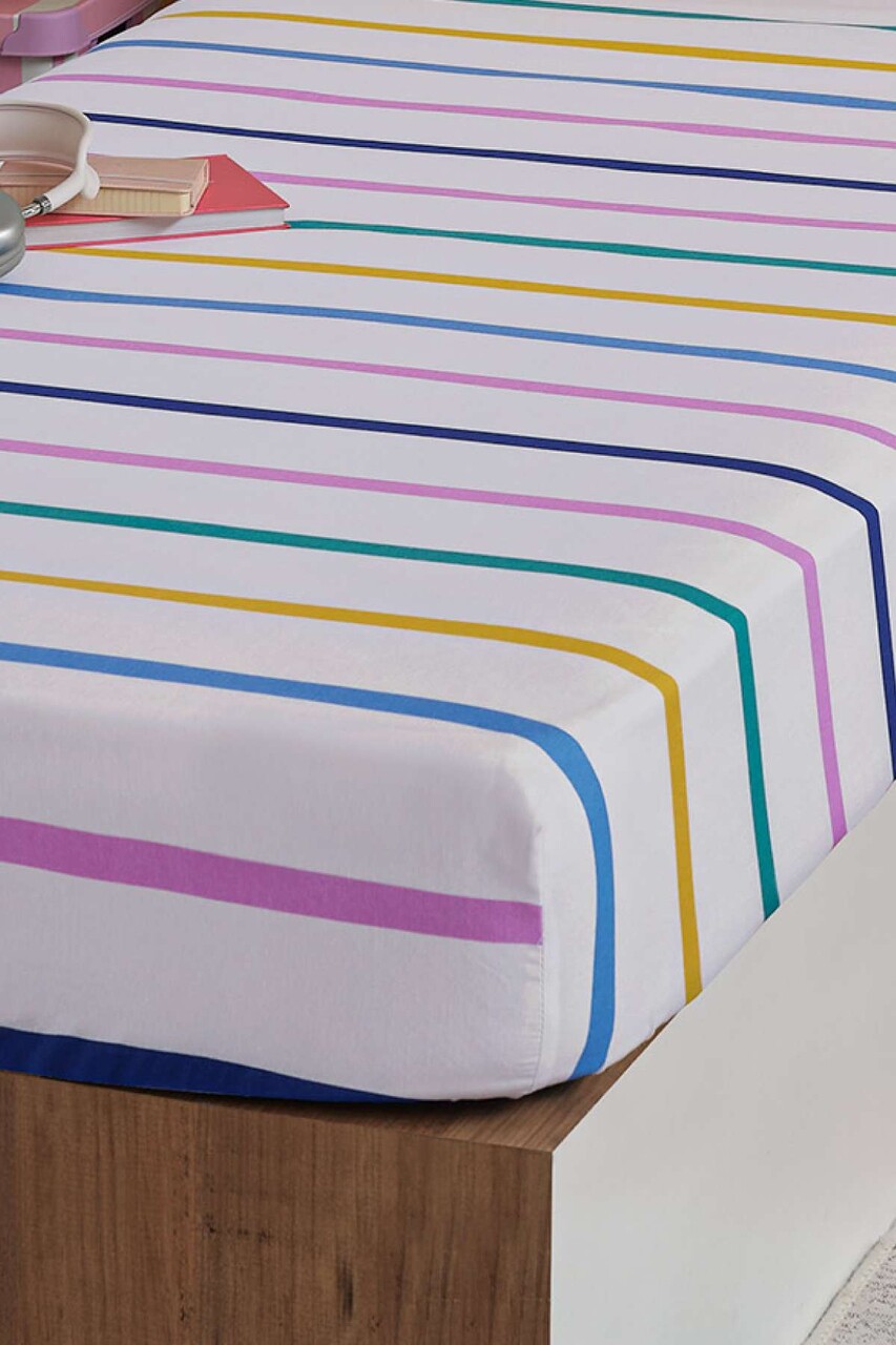 Set de pat pentru o persoana (cearceaf cu elastic si perna) 2 piese, L'essentiel Maison, Funny Cizgili, Galben