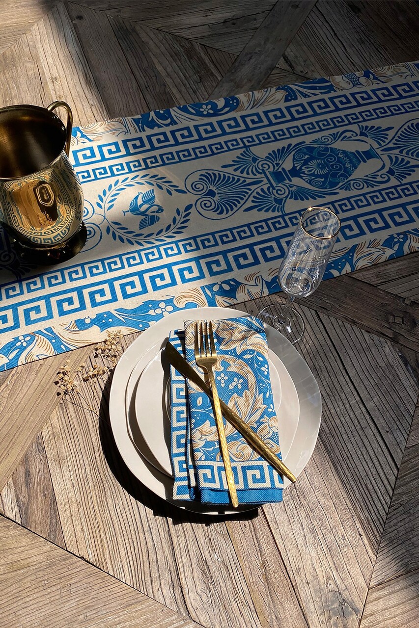 Set de servetele, Hermia, 626SRT1151, Lavabil la mașină la 30 °C / Călcat la temperatură mică. / Nu folosiți înălbitori. / Nu curățați chimic. / Nu uscați la uscător., Albastru/Alb