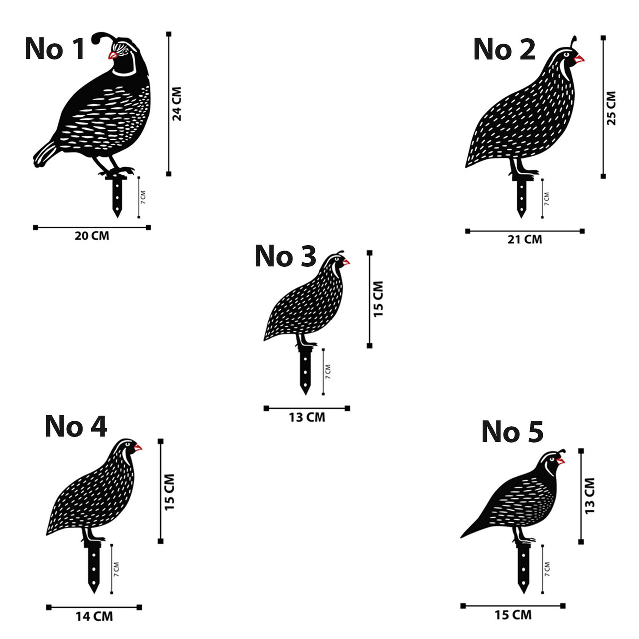 Set decoratiuni pentru gradina, Quails, Metal, Negru