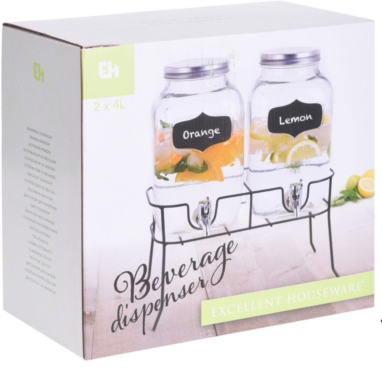 Set dispenser pentru bauturi, 3 piese, 4L, sticla
