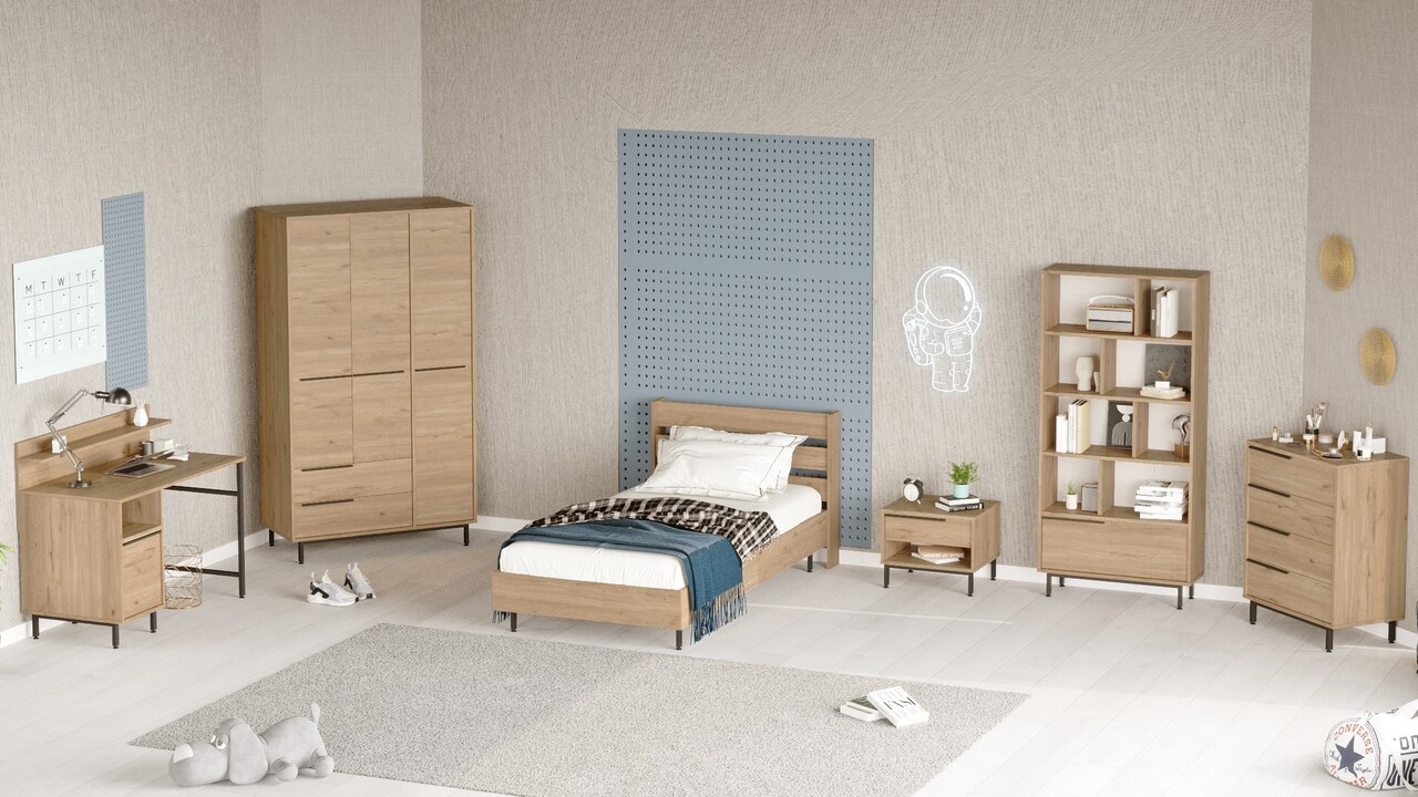 Set dormitor pentru copii, Locelso, ON26-S, PAL, Stejar