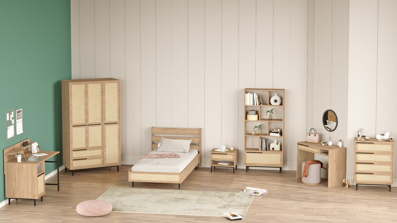 Set dormitor pentru copii, Locelso, ON27-SU, PAL, Stejar