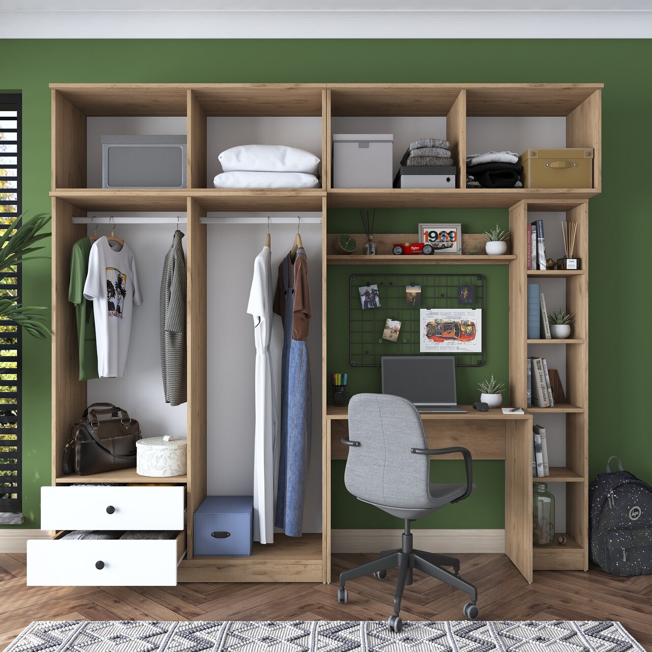Set dormitor studiu, Rani, BA122, PAL, Nuc/Alb