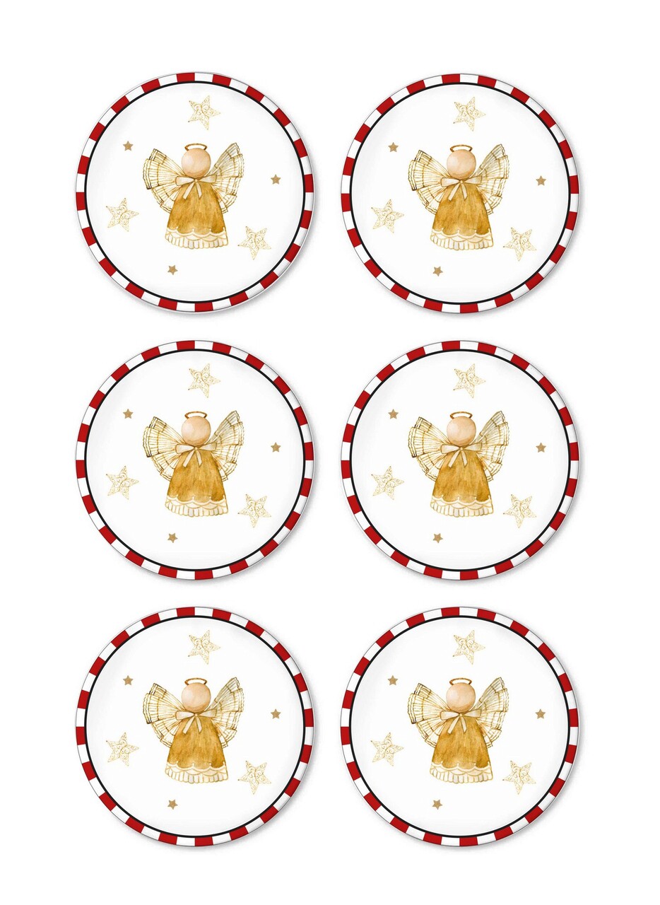 Set farfurii din ceramica pentru desert, Mia - Kitchenware, 280TMA1705, Ceramica , Dimensiune: 19 x 19 x 1 cm (6 bucăți), Alb / Roșu / Galben