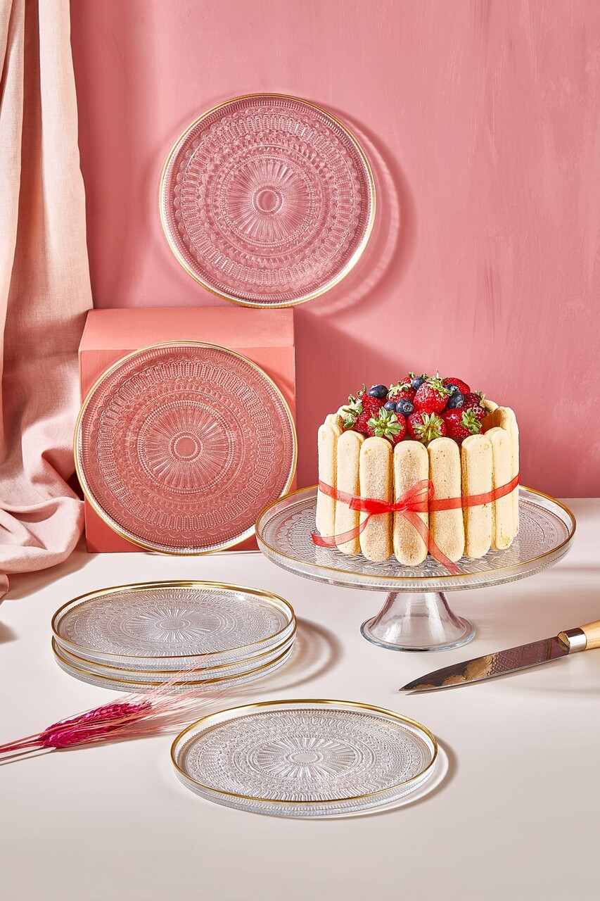 Set farfurii pentru desert, Hermia, 337GLZ1168, Suport pentru tort: 28 cm (1 bucată), Transparent
