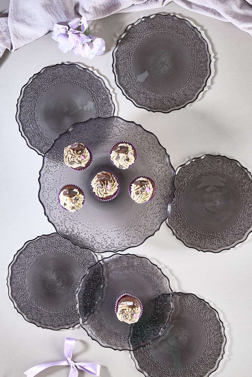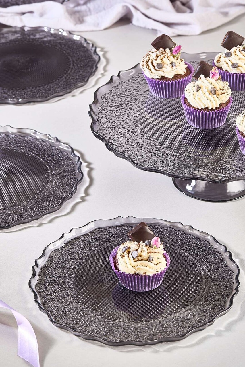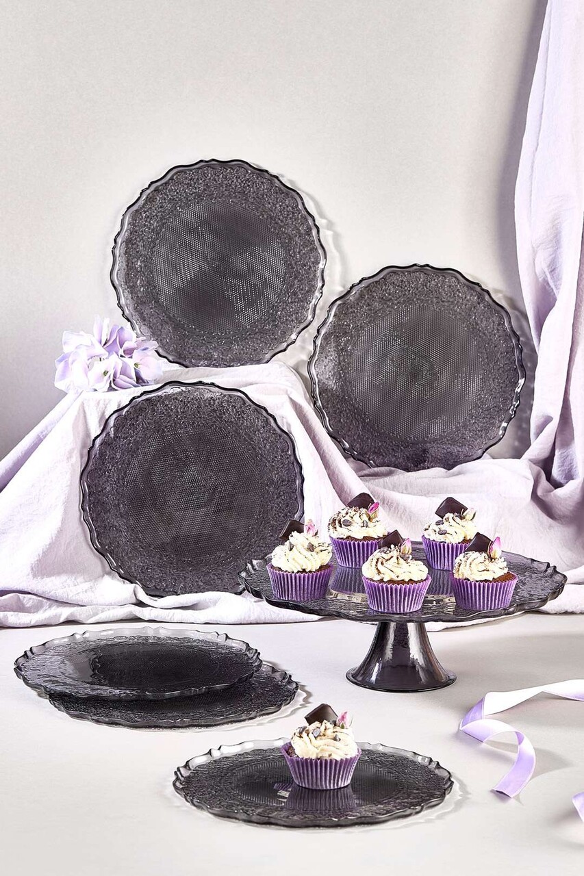 Set farfurii pentru desert, Hermia, 337GLZ1221, Suport: 28 cm (1 bucată), Negru