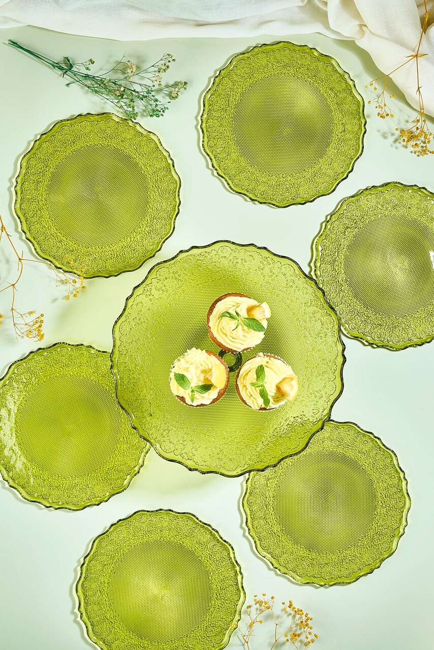 Set farfurii pentru desert, Hermia, 337GLZ1222, Suport: 28 cm (1 bucată), Galben