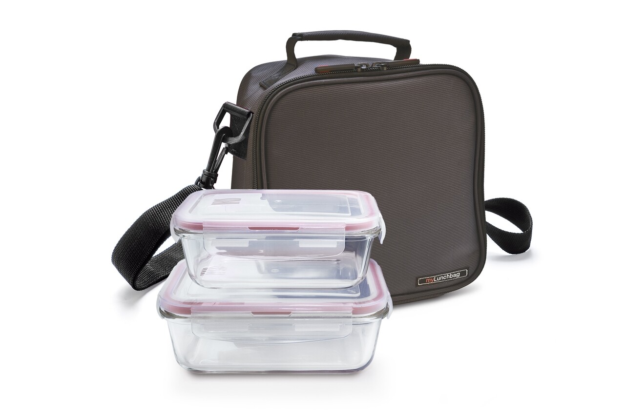 Geanta termica de pranz, ideala pentru a transporta mancarea, comod si sigur, oriunde doriti. Foarte practica si usor de transportat datorita manerului si curelei de umar reglabile in inaltime. Are un buzunar interior cu plasa pentru tacamuri si servetele si include doua recipiente cu capacitate 570 ml si 840 ml. Recipientele sunt realizate din sticla borosilicata, un material curat, sigur si rezistent. Capacele sunt din polipropilena, fara BPA.