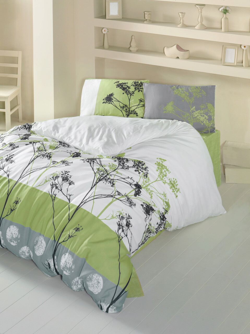 Set lenjerie de pat pentru o persoana Single XL (DE), 2 piese, Blezza - Green v2, Victoria, 65% bumbac/35% poliester