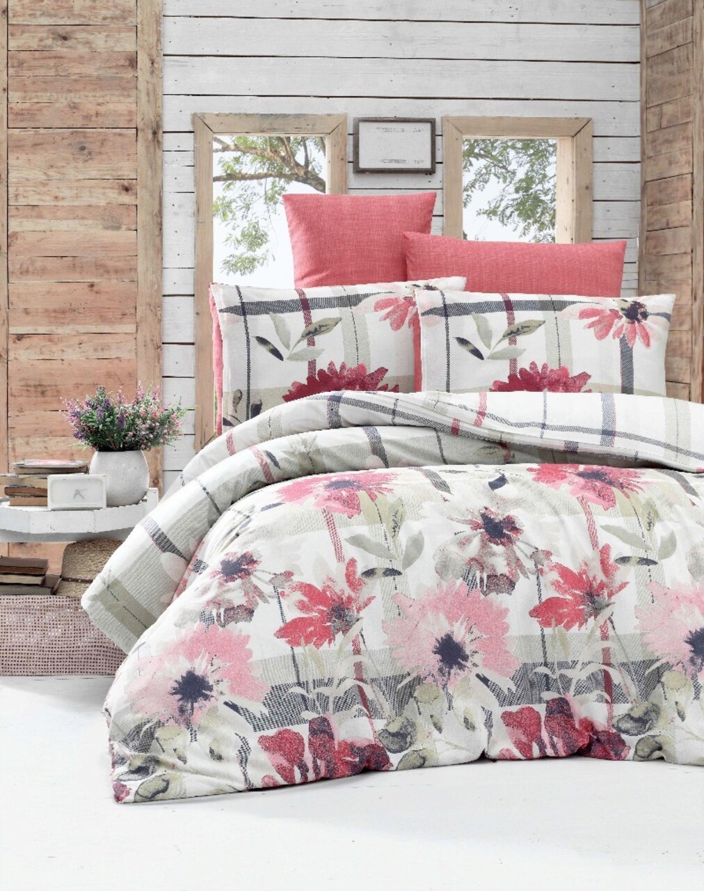 Set lenjerie de pat pentru o persoana Single XL (DE), 2 piese, Vanesa - Pink, Victoria, 65% bumbac/35% poliester