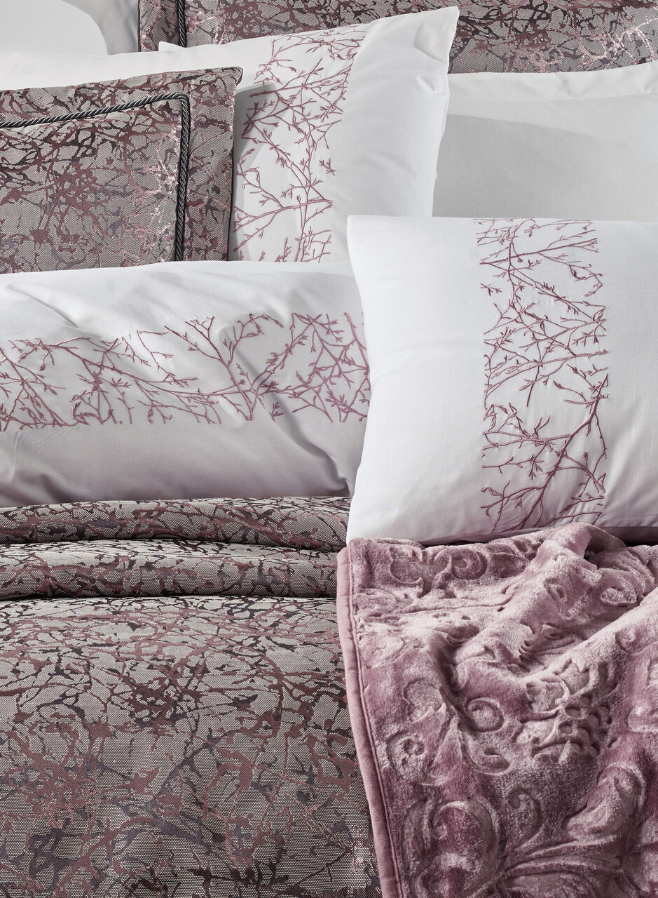 Set lenjerie de pat si cuvertura dubla, L'essentiel Maison, Destina, Pulbere / Alb