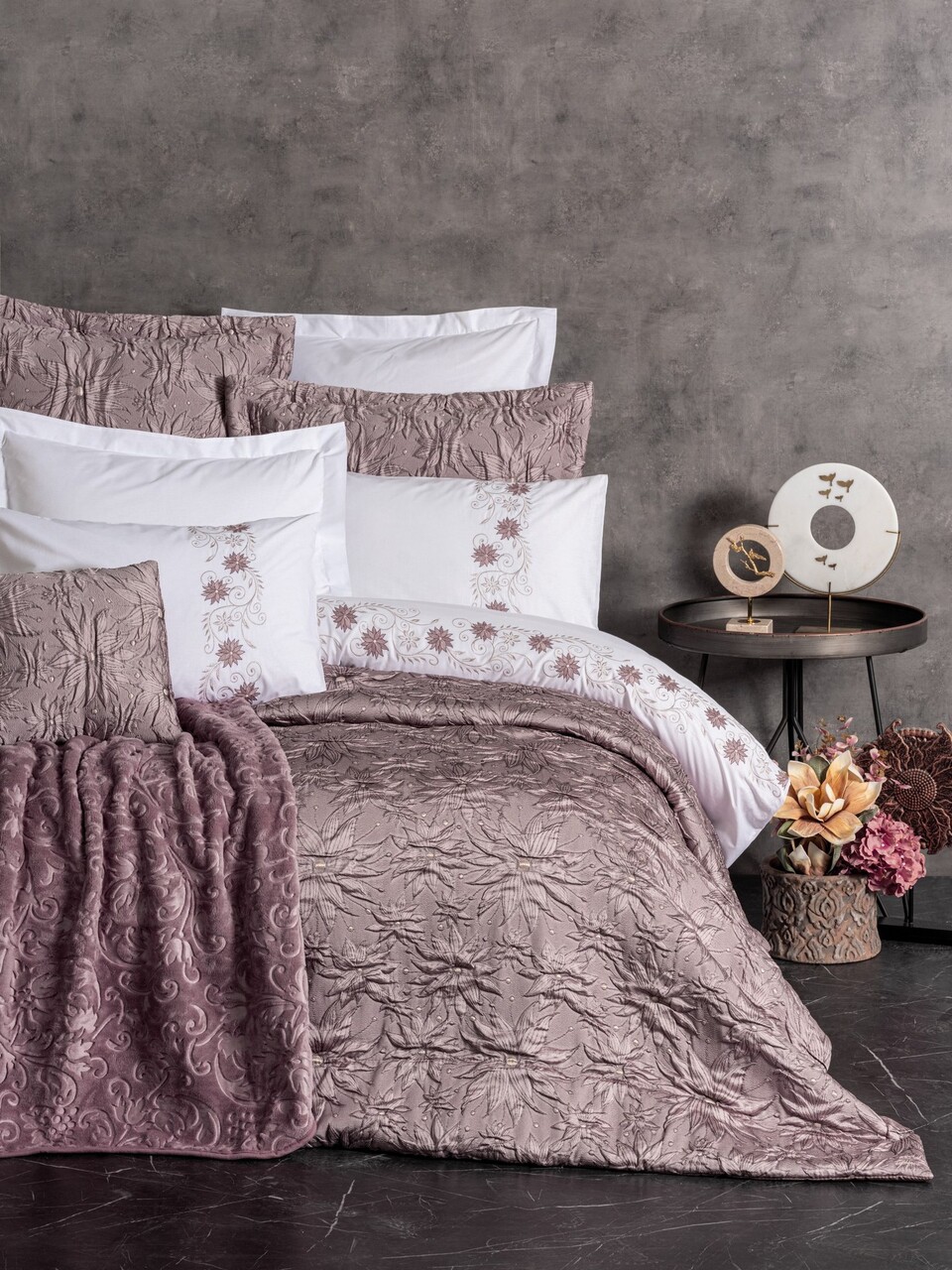 Set lenjerie de pat si cuvertura dubla, Theresa - Powder, Cotton Box, Poliester