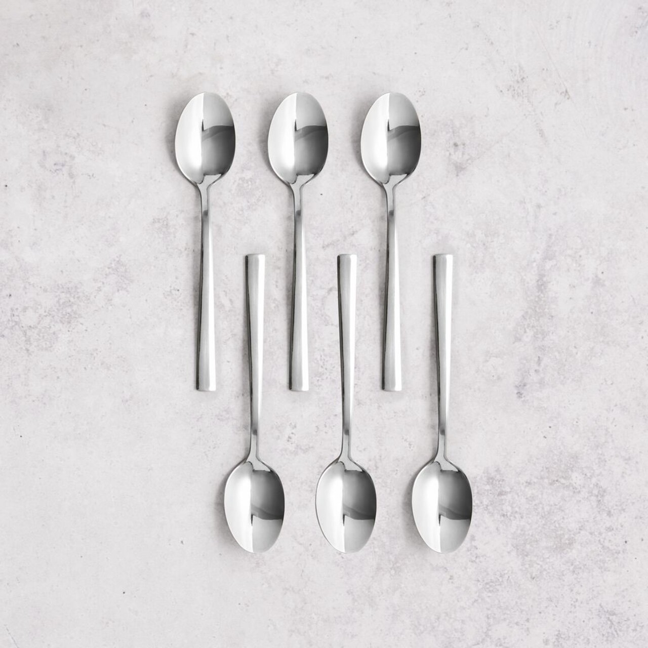 Set alcatuit din 6 lingurite pentru ceai, din otel inoxidabil de inalta calitate. Cu un design clasic si elegant, potrivite ca parte a oricarei decoratiuni la servirea mesei, acestea sunt totodata foarte usor de curatat, putand si spalate in in masina de spalat vase.