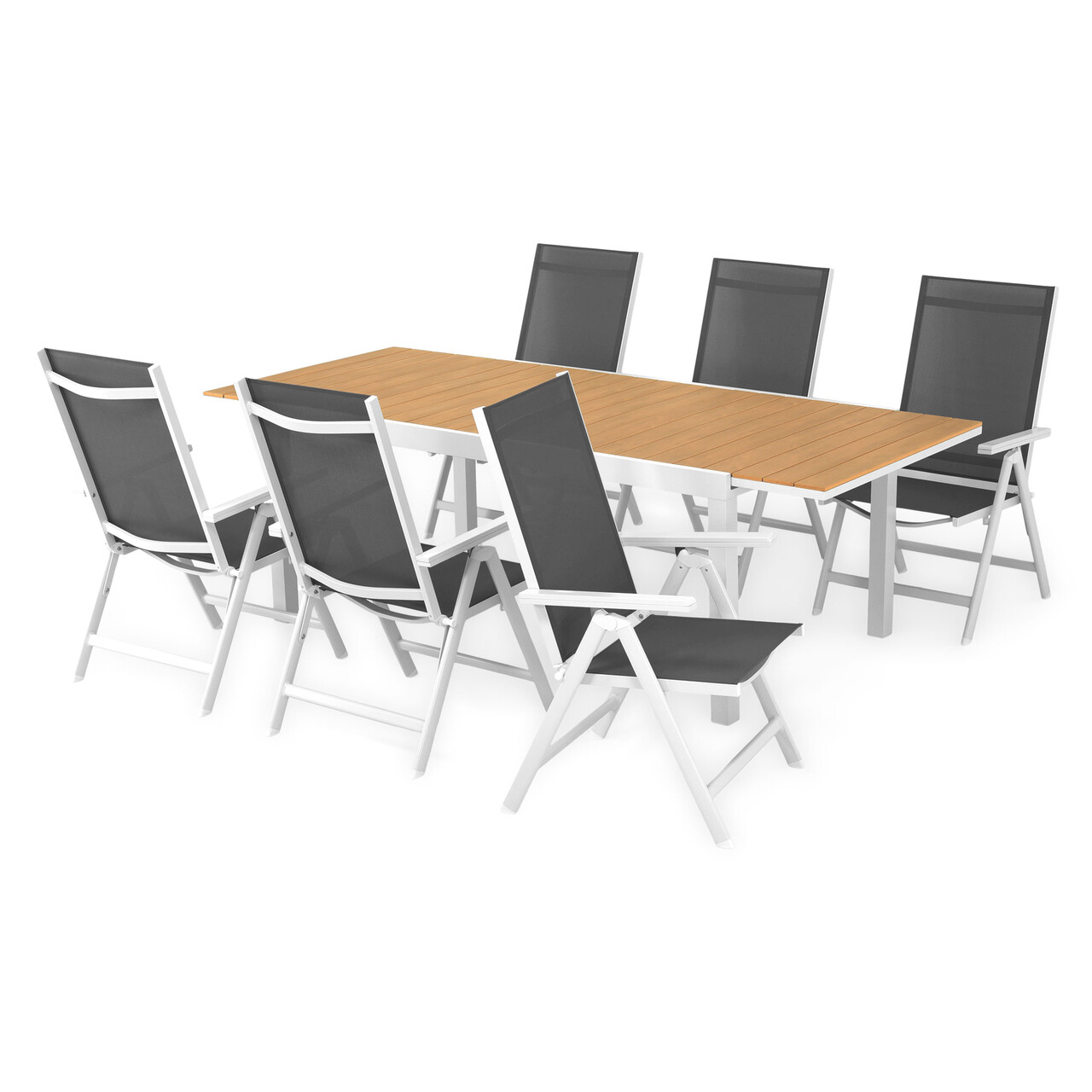 Set masa + 6 scaune Calobra, 180/240x100x74 cm, aluminiu, multicolor