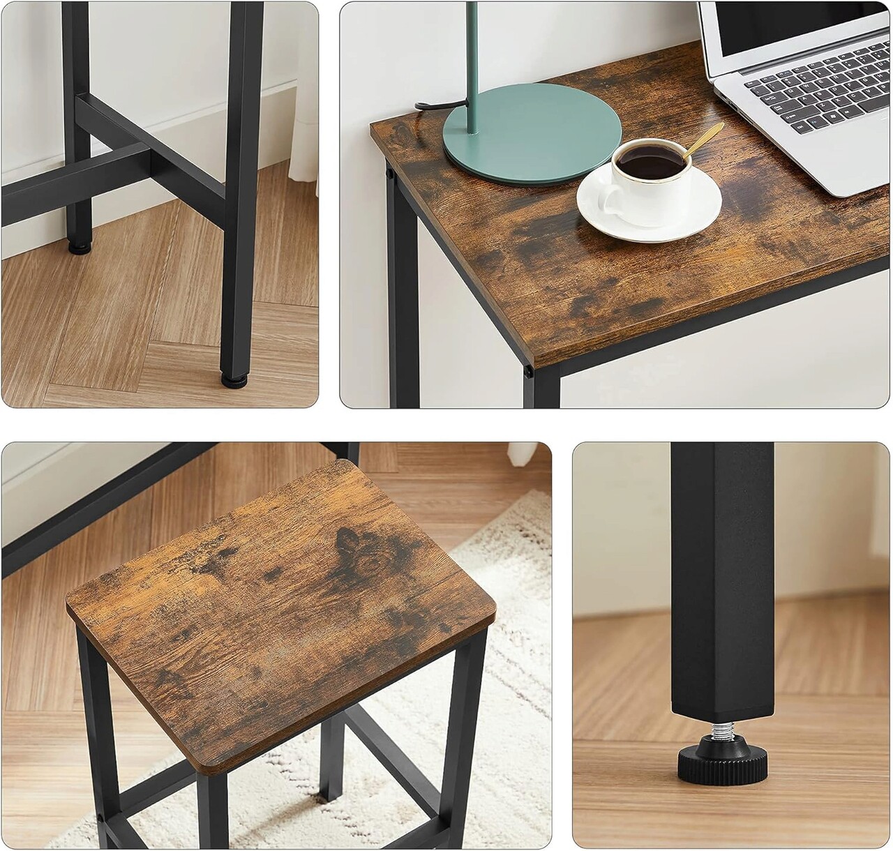 Set masa de bar si 2 scaune Vasagle, 100 x 40 x 90 cm / 30 x 40 x 65 cm, PAL/otel, maro rustic