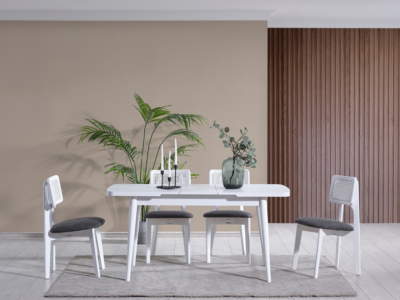 Set masa extensibila si 4 scaune, Hanah Home, Milla, Alb
