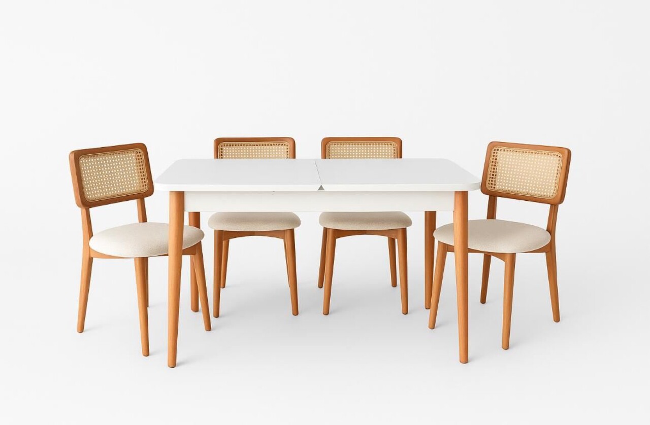 Set masa extensibila si 4 scaune, Hanah Home, Natura, Alb lemn / Stejar