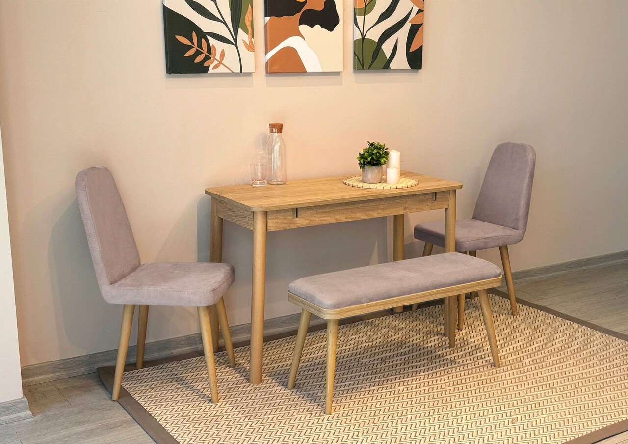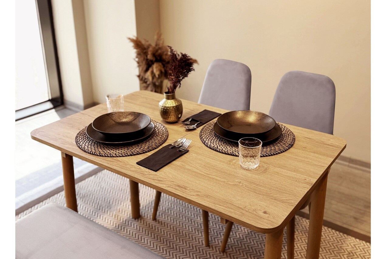Set masa extensibila si 4 scaune, Vella, Vina Mini 01 0701, PAL, Stejar / Gri Soho