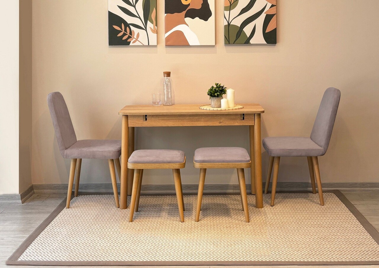 Set masa extensibila si 4 scaune, Vella, Vina Mini 02 0701, PAL, Stejar / Gri Soho