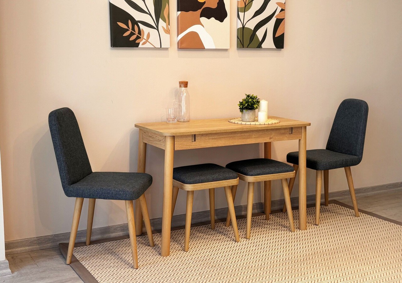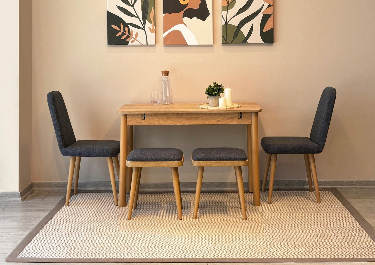 Set masa extensibila si 4 scaune, Vella, Vina Mini 02 1053, PAL, Stejar / Antracit