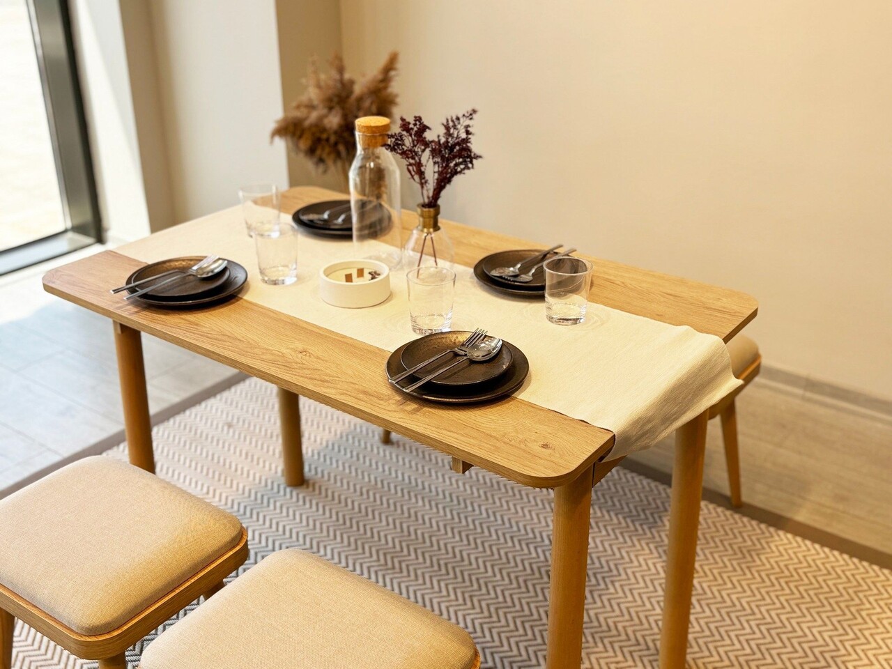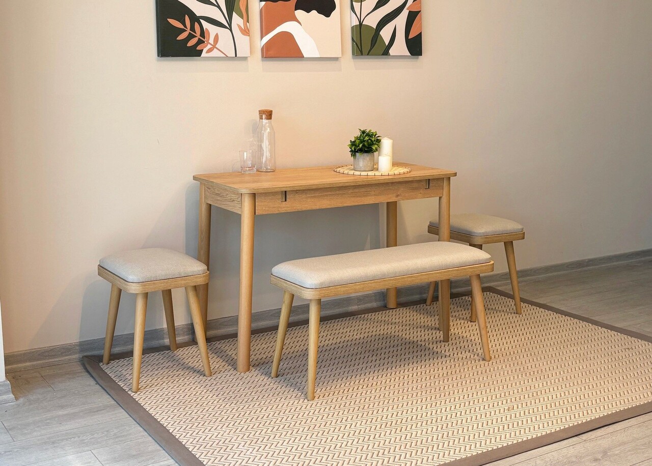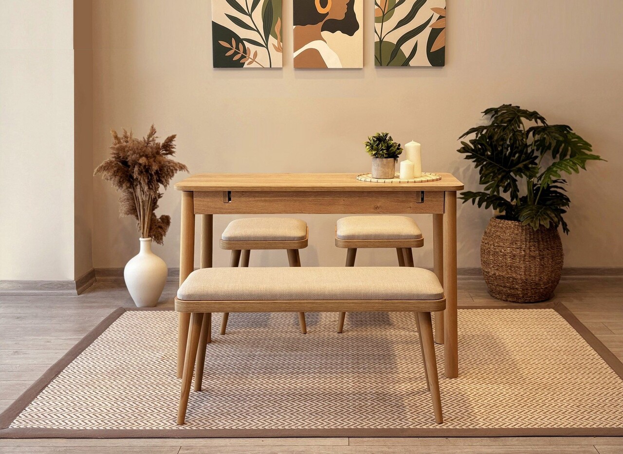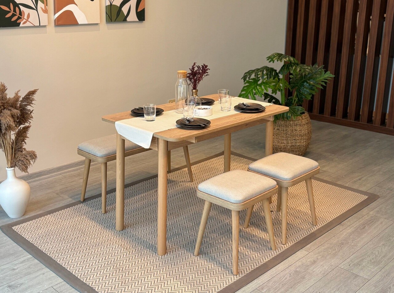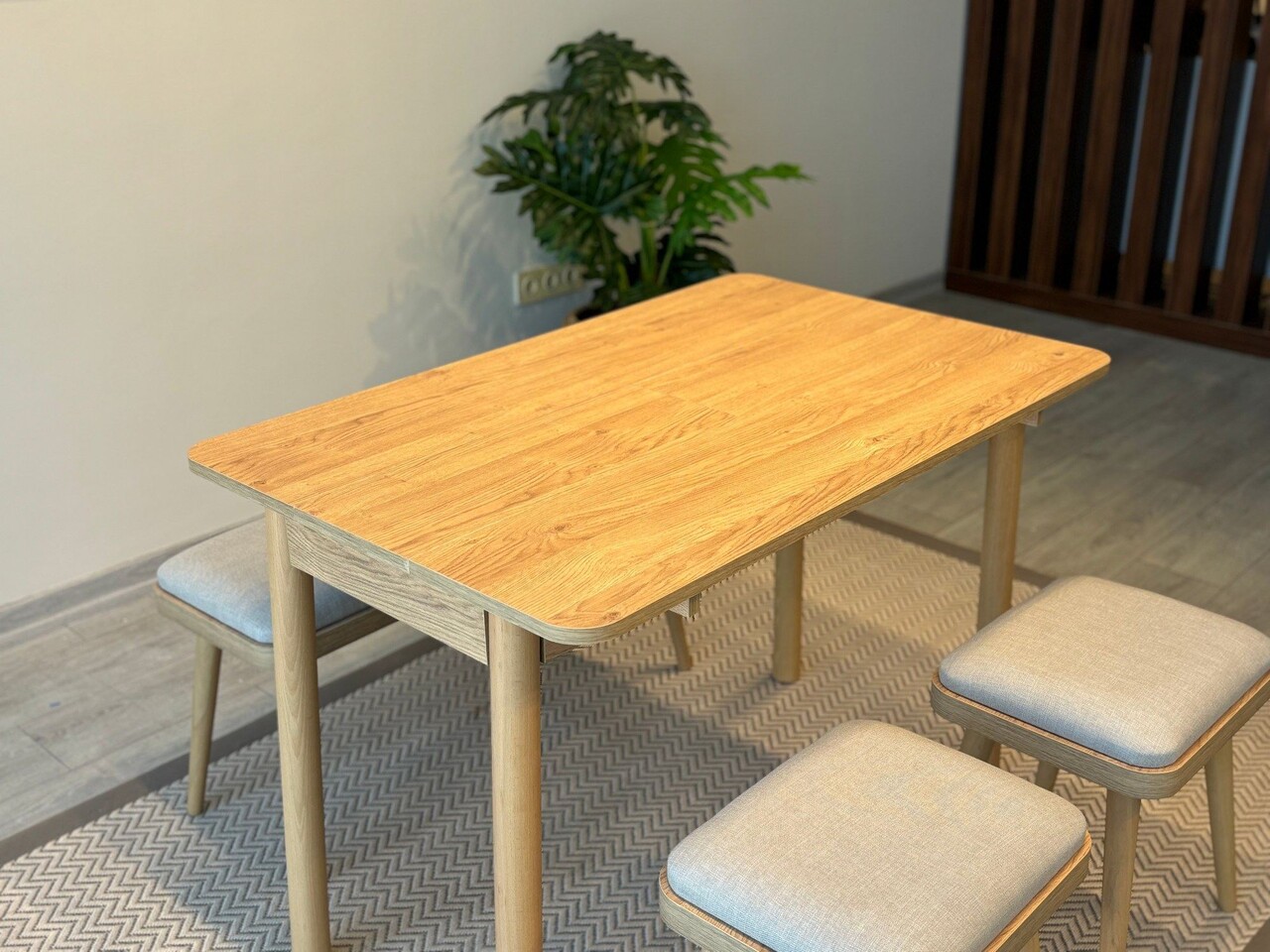 Set masa extensibila si 4 scaune, Vella, Vina Mini 04 1005, PAL, Stejar / Crem