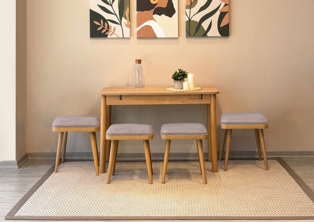 Set masa extensibila si 4 scaune, Vella, Vina Mini 05 0701, PAL, Stejar / Gri Soho