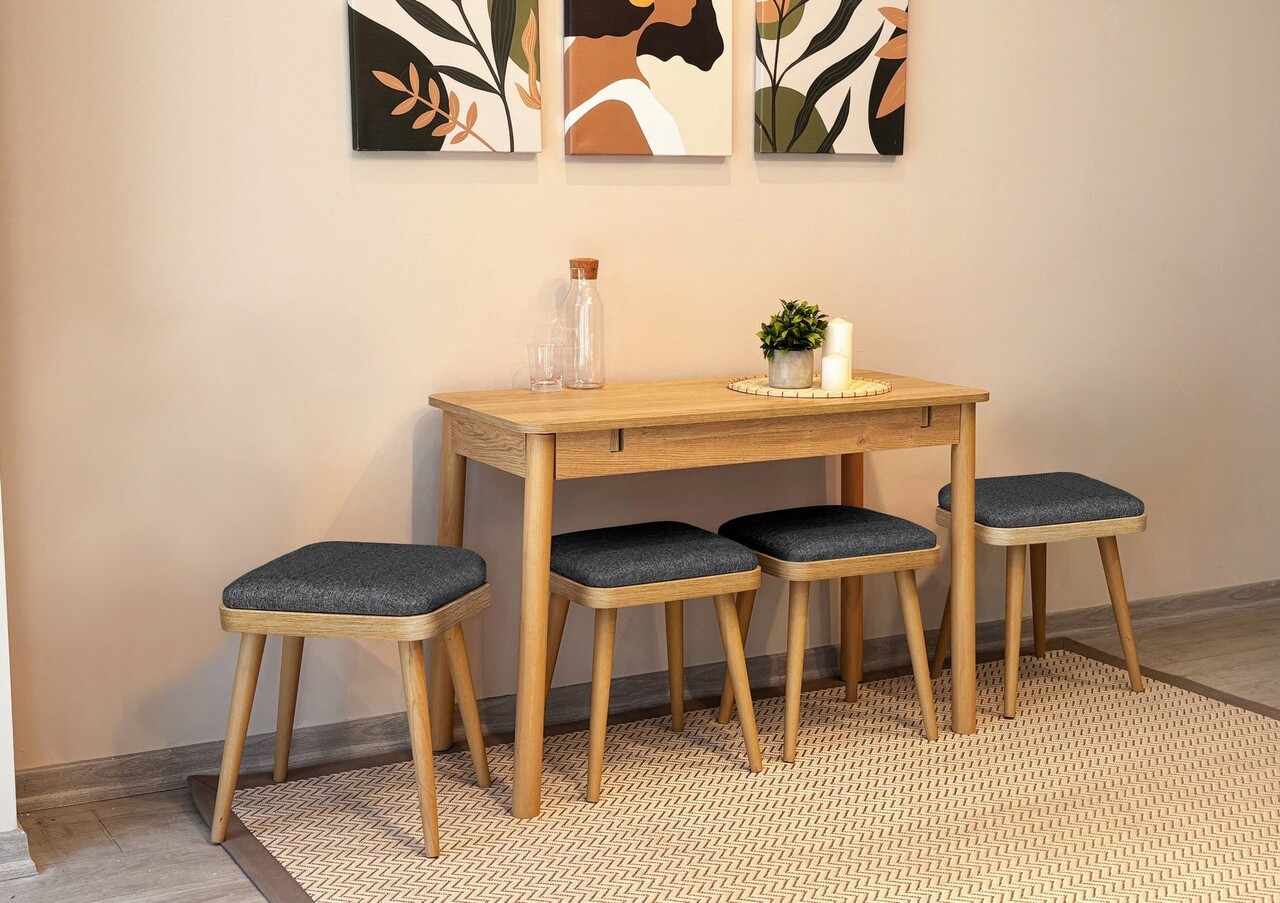 Set masa extensibila si 4 scaune, Vella, Vina Mini 05 1053, PAL, Stejar / Antracit