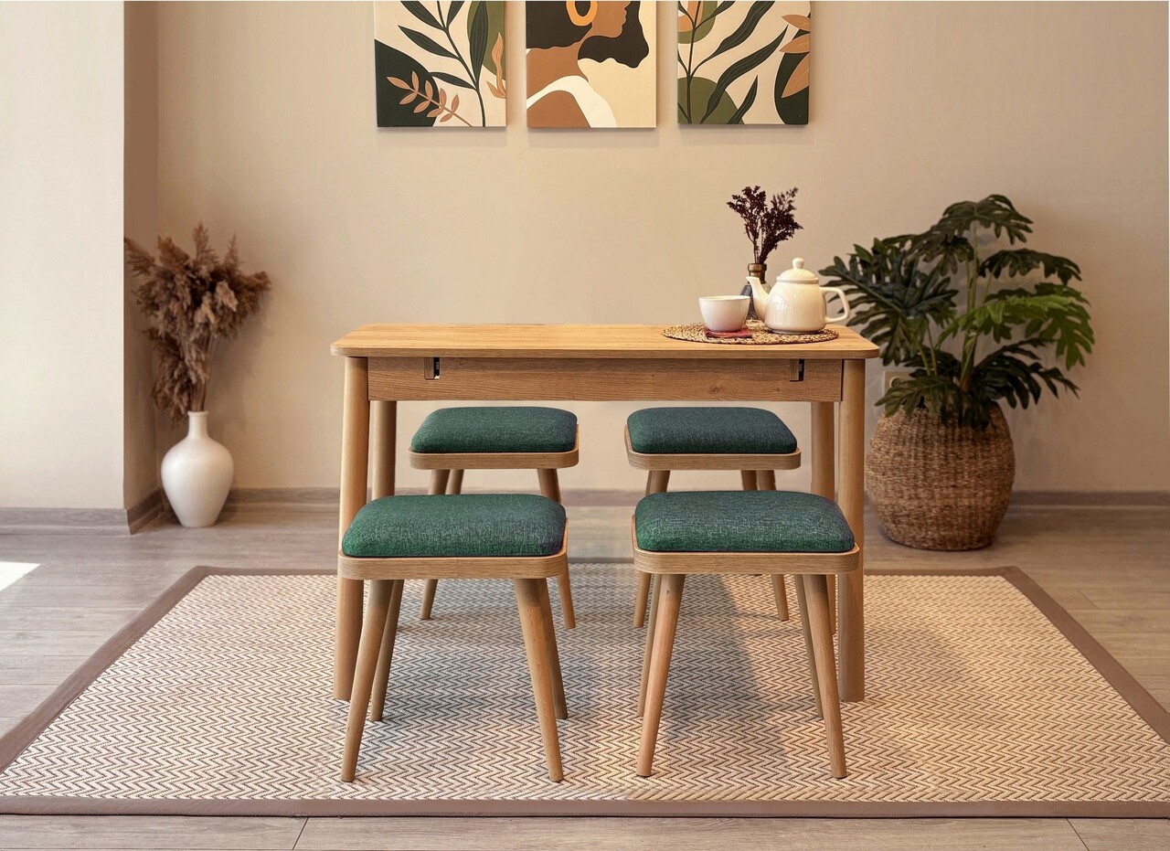Set masa extensibila si 4 scaune, Vella, Vina Mini 05 1070, PAL, Stejar / Verde