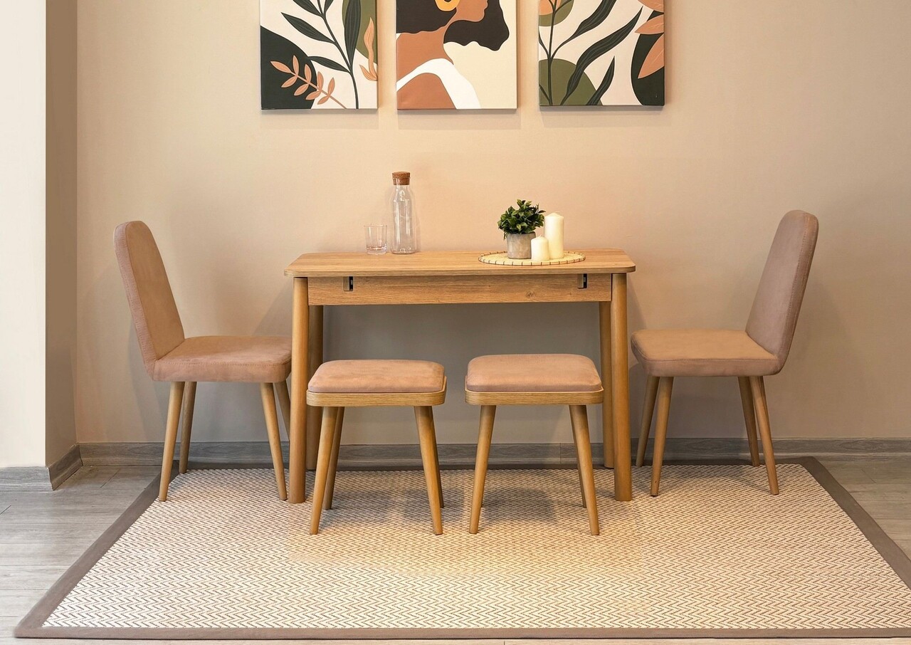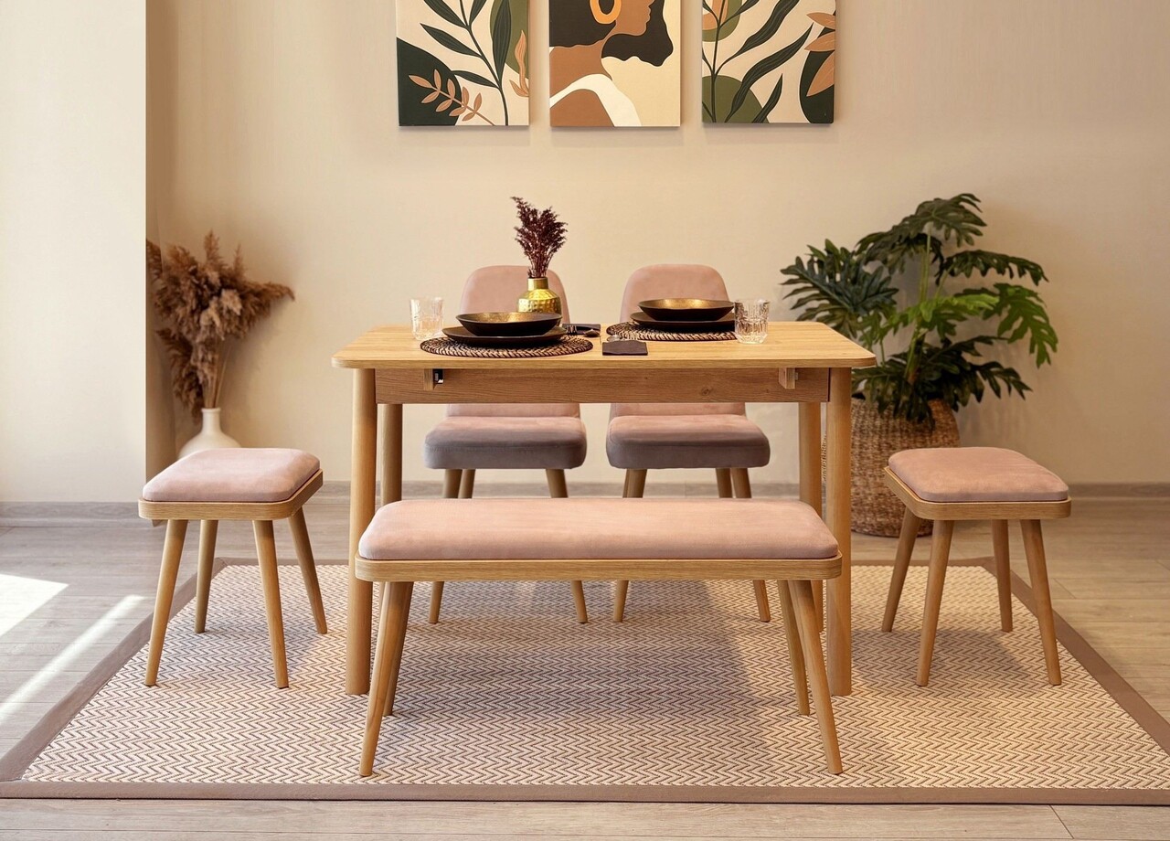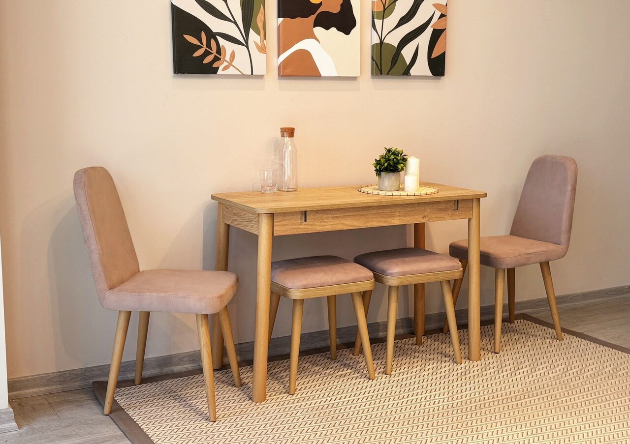 Set masa extensibila si 6 scaune, Vella, Vina Mini 03 0900, PAL, Stejar / Piatra