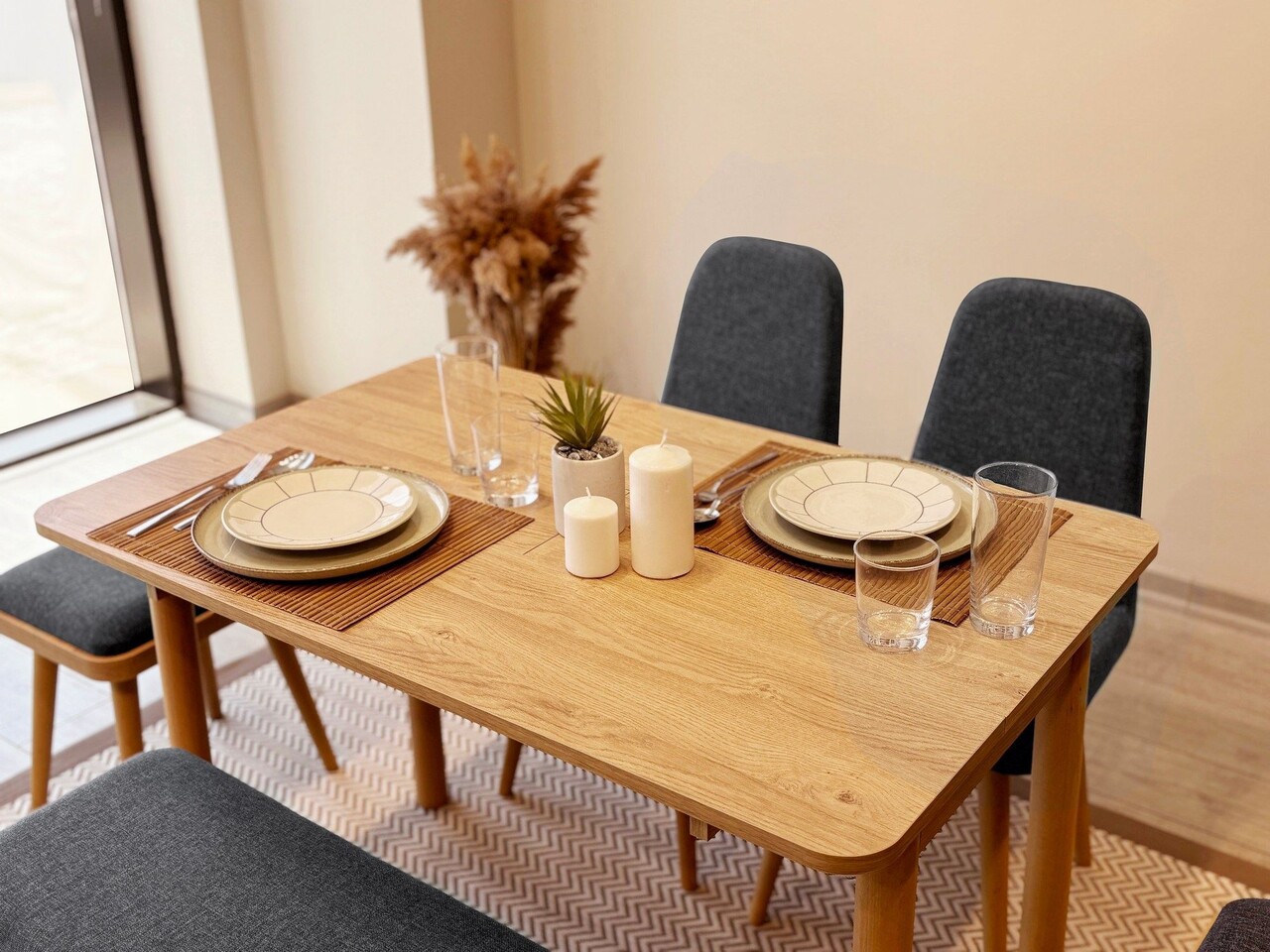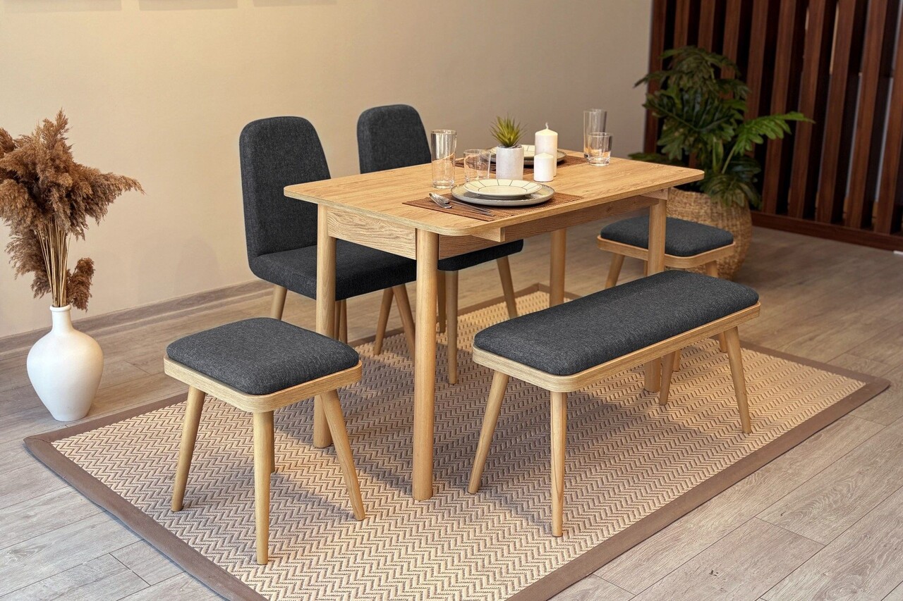 Set masa extensibila si 6 scaune, Vella, Vina Mini 03 1053, PAL, Stejar / Antracit