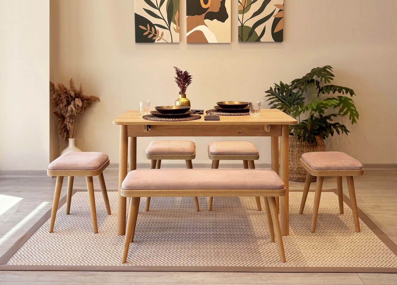 Set masa extensibila si 6 scaune, Vella, Vina Mini 06 0900, PAL, Stejar / Piatra