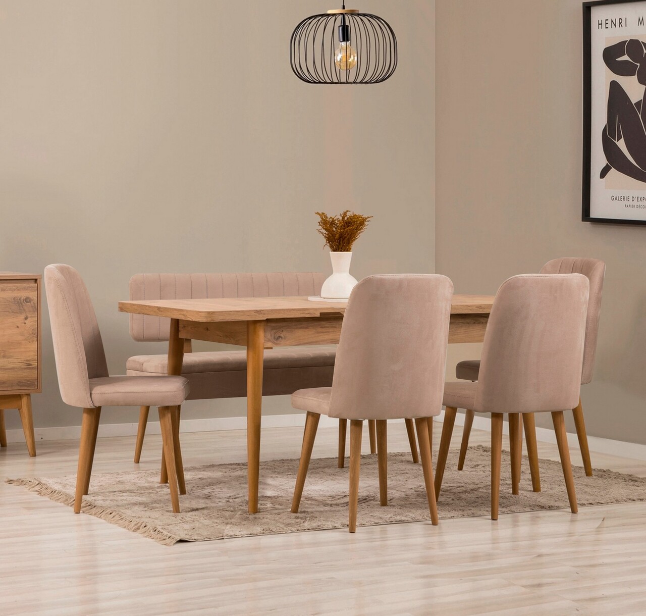 Set masa extensibila si 6 scaune, Vella, Vina, PAL, Pin Atlantic / Piatră