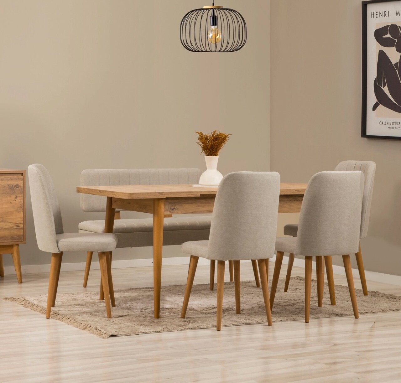Set masa extensibila si 6 scaune, Vella, Vina, PAL, Pin Atlantic / Smântână